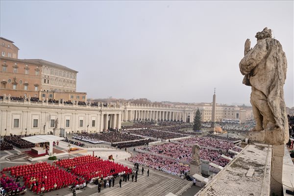 Kezdőkép: A Sándor-palota által közreadott képen XVI. Benedek nyugalmazott pápa temetési szertartása a vatikáni Szent Péter téren 2023. január 5-én. A szertartáson részt vett Novák Katalin köztársasági elnök és férje, Veres István, valamint Semjén Zsolt miniszterelnök-helyettes. A 95 esztendős korában 2022. december 31-én elhunyt emeritus pápát, aki 2005 és 2013 között volt a római katolikus egyház feje, a Szent Péter-bazilika kriptájában helyezik örök nyugalomra. MTI/Sándor-palota