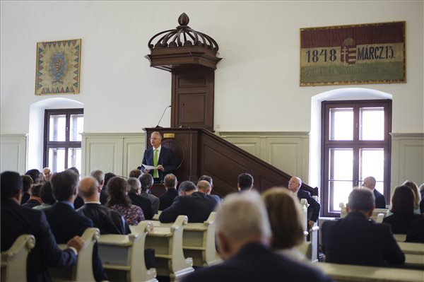 Trócsányi László igazságügyi miniszter felszólal az alaptörvény elfogadásának 5. évfordulója alkalmából rendezett Nemzeti szuverenitásunk alapkérdései című konferencián a Debreceni Református Kollégium Oratóriumában 2016. április 14-én. MTI Fotó: Czeglédi Zsolt