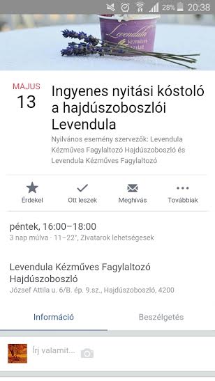 Május 13-án, pénteken mindenkit szeretettel vár ingyenes nyitási kóstolójára a hajdúszoboszlói Levendula Kézműves Fagylaltozó.
