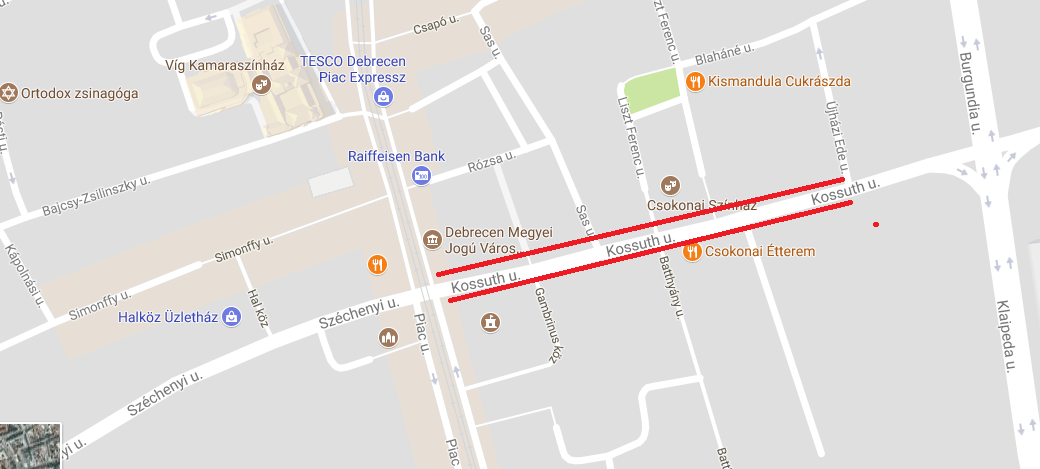 Pénteken a burkolat marására kerül sor az utca páratlan, Batthyány utca felőli oldalában. Az ottani buszöböl burkolatának javítása is megkezdődik. A felújítási munkák ideje alatt a troli- és a buszjáratok ideiglenes megállóhelyeken állnak meg a Kossuth utcán. A teljes útszakaszon sávlezárásokra, sávelhúzásokra kell számítani. Várhatóan 2017. július 22-én, szombaton történnek meg az újraaszfaltozási munkák.