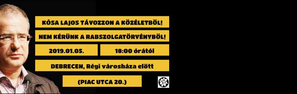 Kósa Lajos közéletből való távozását és az úgynevezett rabszolgatörvény visszavonását fogják követelni szombaton Debrecenben.