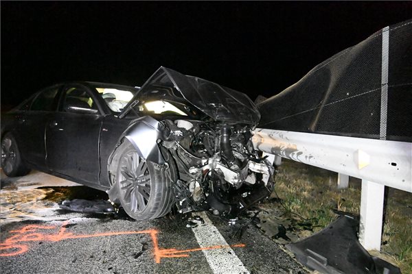 Kezdőkép: Ütközésben összetört személygépkocsi az M4-es autóúton az 53-as kilométernél 2023. október 4-én este. Az autó egy gyermekeket szállító autóbusznak ütközött, a buszon utazók közül senki sem sérült meg, a személyautó vezetője azonban a járműbe szorult. MTI/Mihádák Zoltán