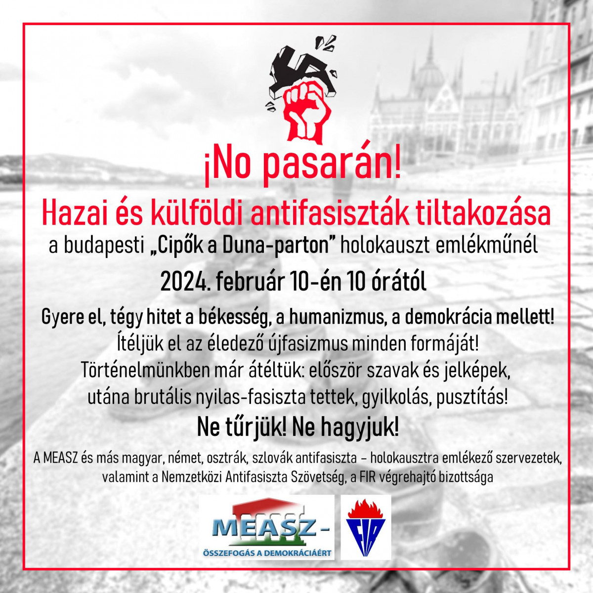 Nemzetközi antifasiszta tiltakozást szervez a MEASZ február 10-én a Duna-parti cipők holokauszt emlékműnél