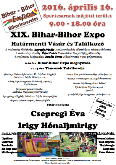 Április 16-án, szombaton lesz a XIX. Bihar-Bihor Expo Határmenti Vásár és Találkozó.