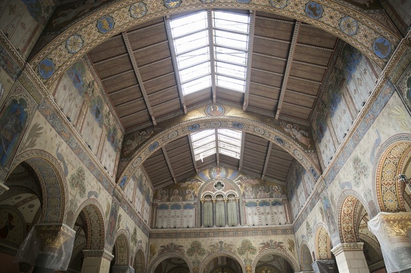 A felújítás leglátványosabb része a II. világháborúban megsérült Román Csarnok rekonstrukciója. A csaknem 900 négyzetméteralapterületű, középkori bazilika belső terét megidéző terem egyedülálló falfestményeinek megújításán mintegy 70 restaurátordolgozott, akik csaknem 2500 négyzetméter falfelületet varázsoltak újjá. A munkálatok során 1500 liter konzerválóanyagot és csaknem 100 kilogramm, különböző színű pigmentet, valamit 5500 aranymetál-lapot, azaz 5,5 kilogramm aranyat használtak fel. Ezek mellett a múzeumi tér korszerű hűtési-fűtési, valamint modern világítási rendszert is kapott.