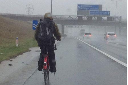 A Hajdú-Bihar Megyei Rendőr-főkapitányság Tevékenység-irányítási Központjába 2015. december 17-én 21 óra 2 perckor érkezett bejelentés arról, hogy az M35-ös autópályán Hajdúböszörmény felől Polgár irányába a forgalommal szemben közlekedik egy kerékpáros a belső sávban. A Hajdúböszörményi Autópálya Alosztály munkatársai azonnal a helyszínre mentek és 10 percen belül az autópálya 18-as kilométerszelvényében megtalálták a zavartan viselkedő kerékpárost, akit beültettek a szolgálati gépkocsijukba és az egyik közeli pihenőben biztonságba helyezték. A rendőrök kérdésére a 65 éves férfi elmondta, hogy még világosban indult el biciklizni, de időközben besötétedett és eltévedt. A hajdúböszörményi lakoshoz a rendőrök mentőt hívtak, akik kórházba vitték a férfit.