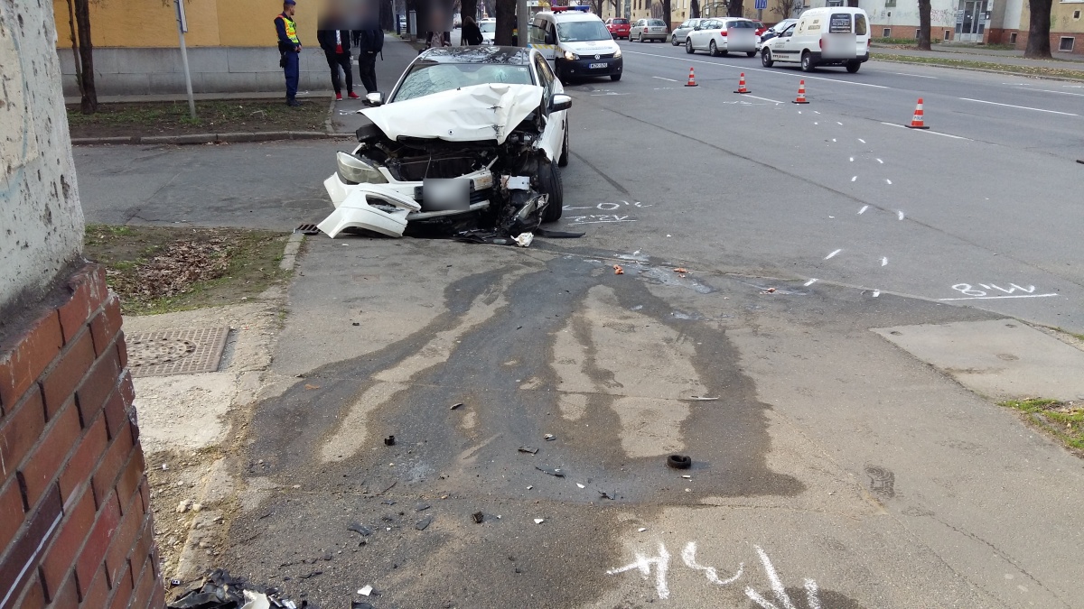 Egy Mercedes típusú személygépkocsi közlekedett Debrecenben, az Egyetem sugárúton, a Honvéd utca felől a Füredi út irányába 2017. március 24-én 5 óra 20 perc körül. A sofőr az Őszirózsa közbe kanyarodott gépjárművével, eközben nekiütközött egy társasház falának. Az esetet látta egy, a közelben elhaladó jármű vezetője, aki megállt és bejelentést tett a rendőrségre.