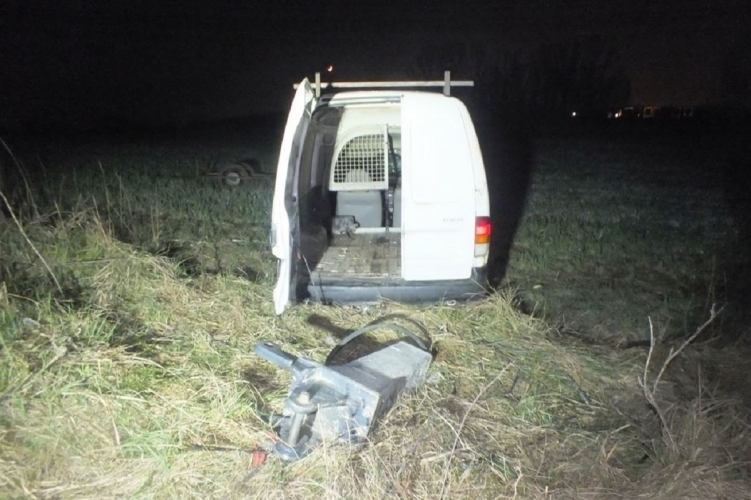 A perceken belül helyszínre érkező járőrök megindultak és átfésülték a környéket. A közeli mezőn egy elakadt puttonyos autóra bukkantak, ami mögött egy bontókalapács fej volt. A kocsitól kb. 800 méterre a menekülők két mezőőrbe botlottak, kérdéseik elől tovább futottak az erdőbe. A mezőőrök sötétben is jobban ismerték a rengeteget, mint a gyanúsan iszkoló és búvóhelyet kereső férfiak. Gyorsan megtalálták és a rendőrök kiérkezéséig visszatartották őket.