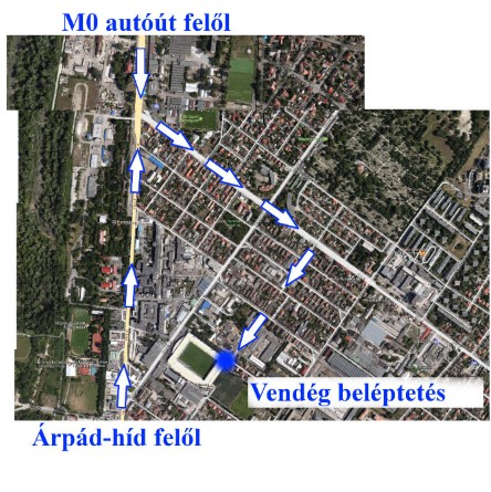 A stadion felújítása után a vendégszektor áthelyezésre került, így a szurkolók a szektort a következő útvonalon tudják megközelíteni: Váci út – Fóti út – Labdarúgó utca (5. kereszteződés jobbra).