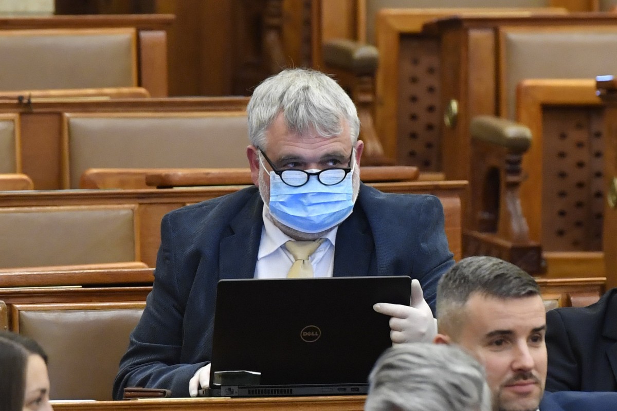 Az Egészségügyi Világszervezet, a WHO legutóbbi sajtótájékoztatóján is kiállt amellett, hogy egészséges, nem beteggel foglalkozó embernek nem ajánlják a védőmaszkok hordását – írja az Index.Fotó: Gyüre Csaba, a Jobbik képviselője védőmaszkot és gumikesztyűt visel a koronavírus-járvány miatt az Országgyűlés plenáris ülésén 2020. március 30-án. MTI/Máthé Zoltán