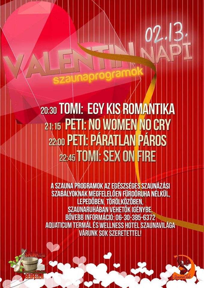 Helyszín: Aquaticum Szaunavilág (Nagyerdei park 1., Tel.: 52/514-174)