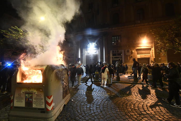 “Szabadság, szabadság” – skandálták a szájmaszkos tüntetők, akik azt kiabálták, ha De Luca bezárja őket, pénzt is adjon a megélhetéshez. A menet a széles tengerparti sétányon folytatódott, ahol a tüntetők egy csoportja füstbombákkal, kövekkel, üvegekkel dobálta a rendőröket, és láncok is előkerültek. Újságírókat is megtámadtak, több járművet megrongáltak. A rohamrendőrök többször is oszlatták a tömeget, könnygázt is bevetettek. Éjfélre a rendbontás véget ért.