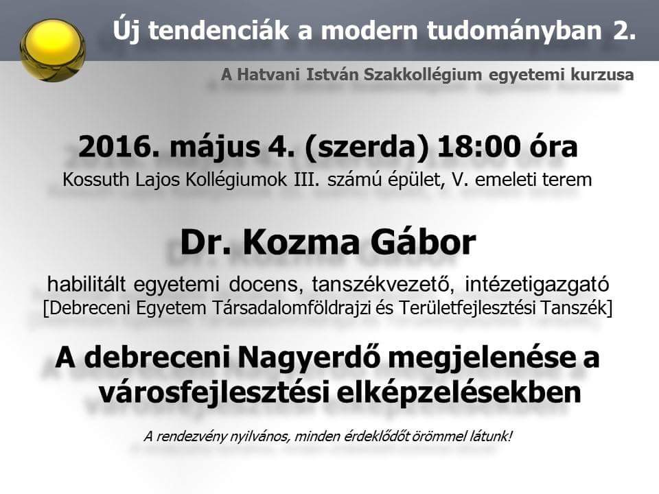 Kozma Gábor előadása a Hatvani István Szakkollégiumban.