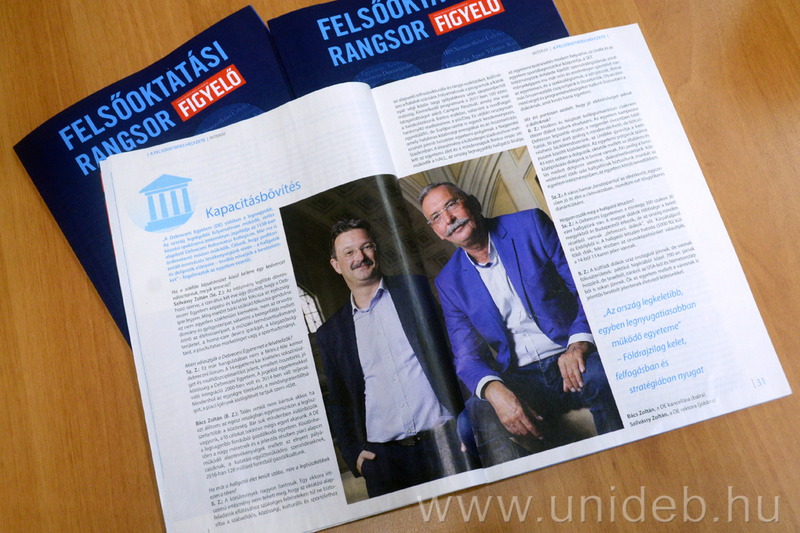A Debreceni Egyetem képzési és kutatási kínálatáról, gazdálkodásáról, kutatás-fejlesztési stratégiájáról, valamint harmadik missziós tevékenységéről is beszélt Szilvássy Zoltán rektor és Bács Zoltán kancellár a Figyelő Felsőoktatási Rangsor 2018 című kiadványnak adott interjúban.