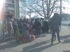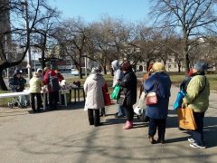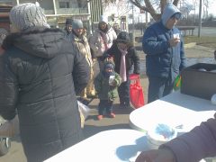 Az ingyenes ételosztáson egy tál meleg ebéddel, forró teával vártunk minden rászorulót. A metsző hideg (mínusz hét fok), a nagy szél ellenére jóval több mint száz embertársunk állt a sorban a töltött káposztáért, a friss kenyérért. A kegyetlen