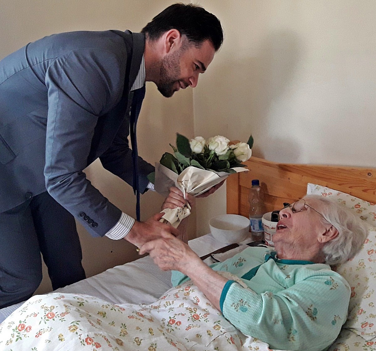 Ebből az alkalomból 2018. május 2-án otthonában köszöntötte őt lakóterülete egyéni önkormányzati képviselője, Barcsa Lajos, valamint Siposné Hüse Judit, a polgármesteri hivatal szociális osztályának munkatársa. Mária néni hajdan ápolónőként dolgozott, s a köszöntés idején is nagy mesélőkedvvel idézte fel emlékeit.