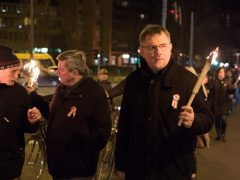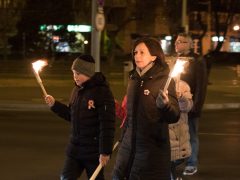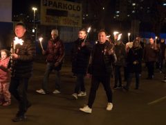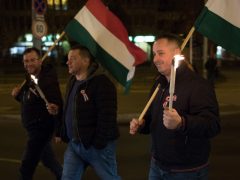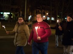 Hagyományos fáklyás felvonulást tartottak az Egyetem tér – Egyetem sugárút – Bethlen utca – Déri tér útvonalon az 1848-as forradalom évfordulójának előestéjén, 2019. március 14-én.