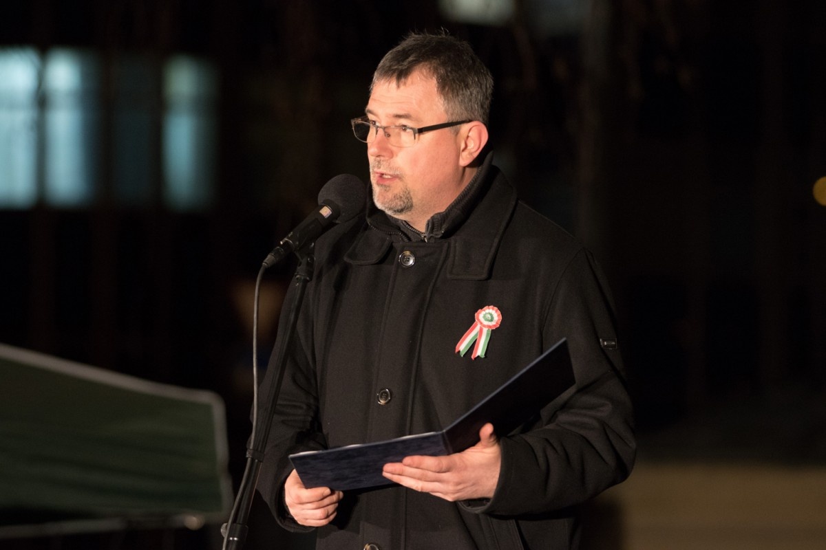 A Déri téren Komolay Szabolcs alpolgármester köszöntötte az ünneplőket. Mint felidézte, 170 esztendővel ezelőtt. 1849-ben már csak, mi magyarok voltunk Európa népei közül azok, akik a szabadságukért küzdöttek. A többi nemzet már meghajolt a túlerő előtt, nem vállalva azokat az áldozatokat, amelyek egy szabadságharc megvívásához szükségesek voltak. Mert a szabadság kivívása és megtartása nem lehetséges áldozatok nélkül.