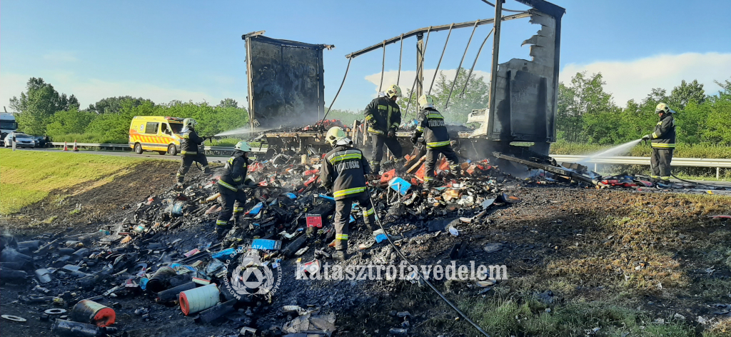A sofőrnek sikerült szétkapcsolni a szerelvényt, így a tűz a kamionra nem terjedt át. A tűzoltók kiérkezésekor a pótkocsi teljes egészében égett, a tűz átterjedt a füves területre is. A lángokat a dabasi hivatásos tűzoltók oltották el, hűtötték vissza a felhevült fém alkatrészeket, majd vizsgálták át a kiégett vontatmányt és a körülötte lévő füves területet.
