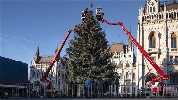 Fotó: Lebontják az ország karácsonyfáját, valamint a betlehemi jászolt a Kossuth téren vízkereszt napján, 2023. január 6-án. MTI/Szigetváry Zsolt