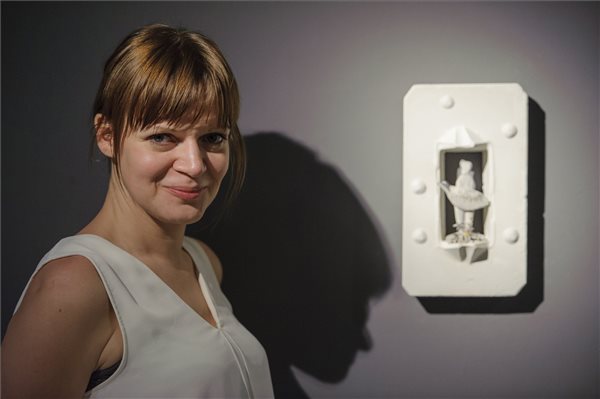 Magyarósi Éva animációs látványtervező A játékosok száma végtelen. Újabb játék kegyetlen lányoknak című kiállításán a debreceni b24 Galériában 2017. február 3-án. A tárlatot március 4-ig lehet megtekinteni. MTI Fotó: Czeglédi Zsolt