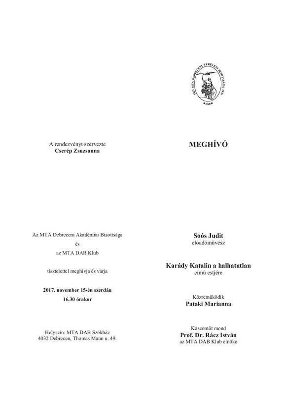 Karády Katalin-est lesz a DAB székházban
