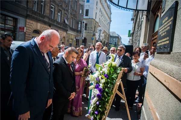 A megemlékezés végén a résztvevők megkoszorúzták az ORÖ székházának falán a roma holokauszt áldozatainak emléktábláját.