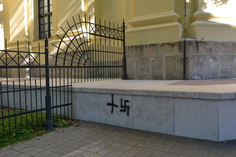 Csütörtök délben az egyik lelkész tett bejelentést arról, hogy ismeretlen tettes vagy tettesek fordított keresztet, valamint horogkeresztet festettek a Debreceni Nagytemplomra.