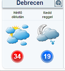 Hétfőn is folytatódik országosan a fülledt, meleg, nyári idő, mely kitart a hét végéig, de többfelé – főként hazánk középső harmadán – kell számítani záporok, zivatarok kialakulására, melyeket továbbra is jellemzően felhőszakadás, helyenként jégeső, viharos széllökés kísérheti. Napközben 28-35°C várható, keleten marad a forróság – írja az Időkép.