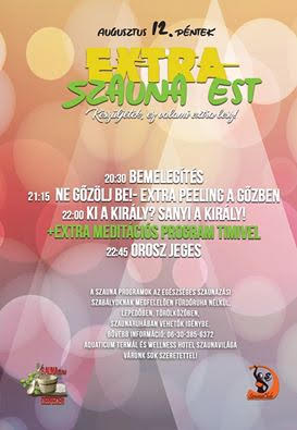 Pénteken újra szaunaest extra programokkal. Egy aromás bemelegítés után közkívánatra ismét gőz peelingek, hammam elemekkel. Az elkövető: Skita Peti.